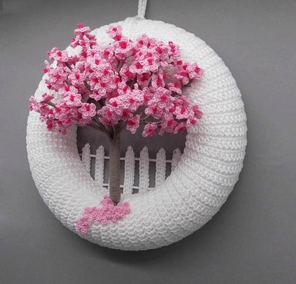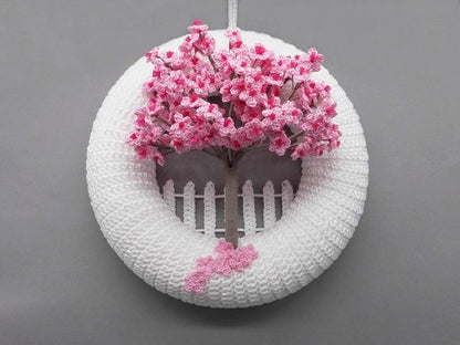 Preserve the beauty of cherry blossoms with this crochet pattern, bringing spring’s charm to your doors and walls with a timeless floral touch.