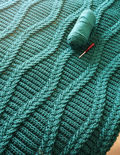 Crochet your own keepsake, whether as a cozy family throw or a thoughtful gift. The diamond cabling makes the blanket look impressive while the repeat rows keep the process calming and satisfying.